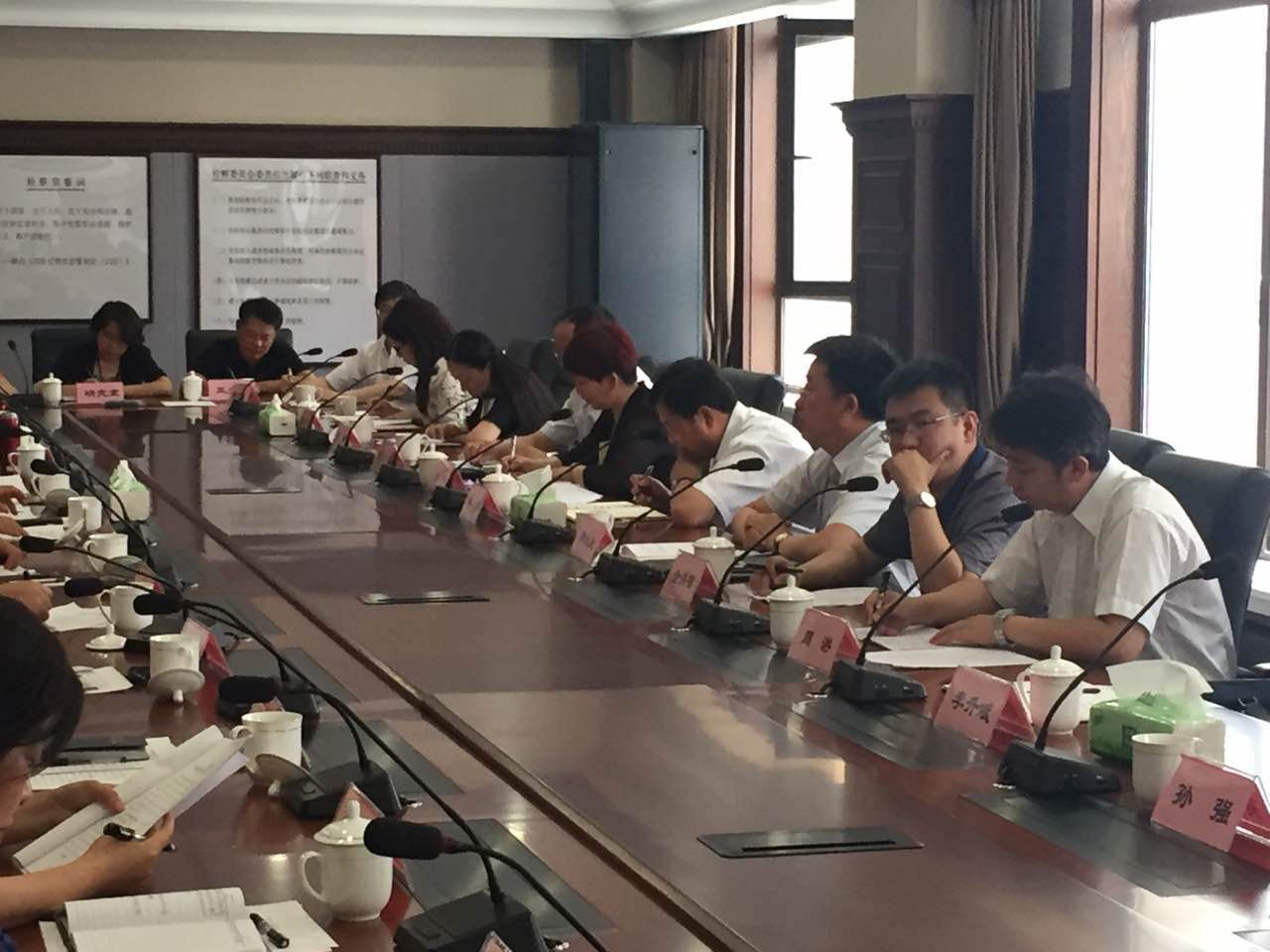 2016年6月7日下午13:30,“程序公正,维护律师权益”为主题的在市检察院9层会议室举行。市律师协会在华洋副会长、新大生副会长的带领下,律师协会权益保障委员会主任、副主任、刑法委员会主任、副主任等十余人参加,市检察院也派出了强大的领导人员阵容参加座谈,有杨培泉副检察长、郑大为副检察长以及反贪局、刑事执行监督局、网监处、案管处、侦监处、公诉处等十余个职能部门正职领导参加。双方在热情、友好的氛围中,围绕“程序公正,维护律师权益”的主题发表各自意见和看法,一致认为程序公正在司法公正中占有重要的地位,法律职业共同体中检律关系的和谐相处是维护司法公正的重要组成部分,双方均希望检律良性互动,建立常态化的合作机制,共同维护司法的公平正义。