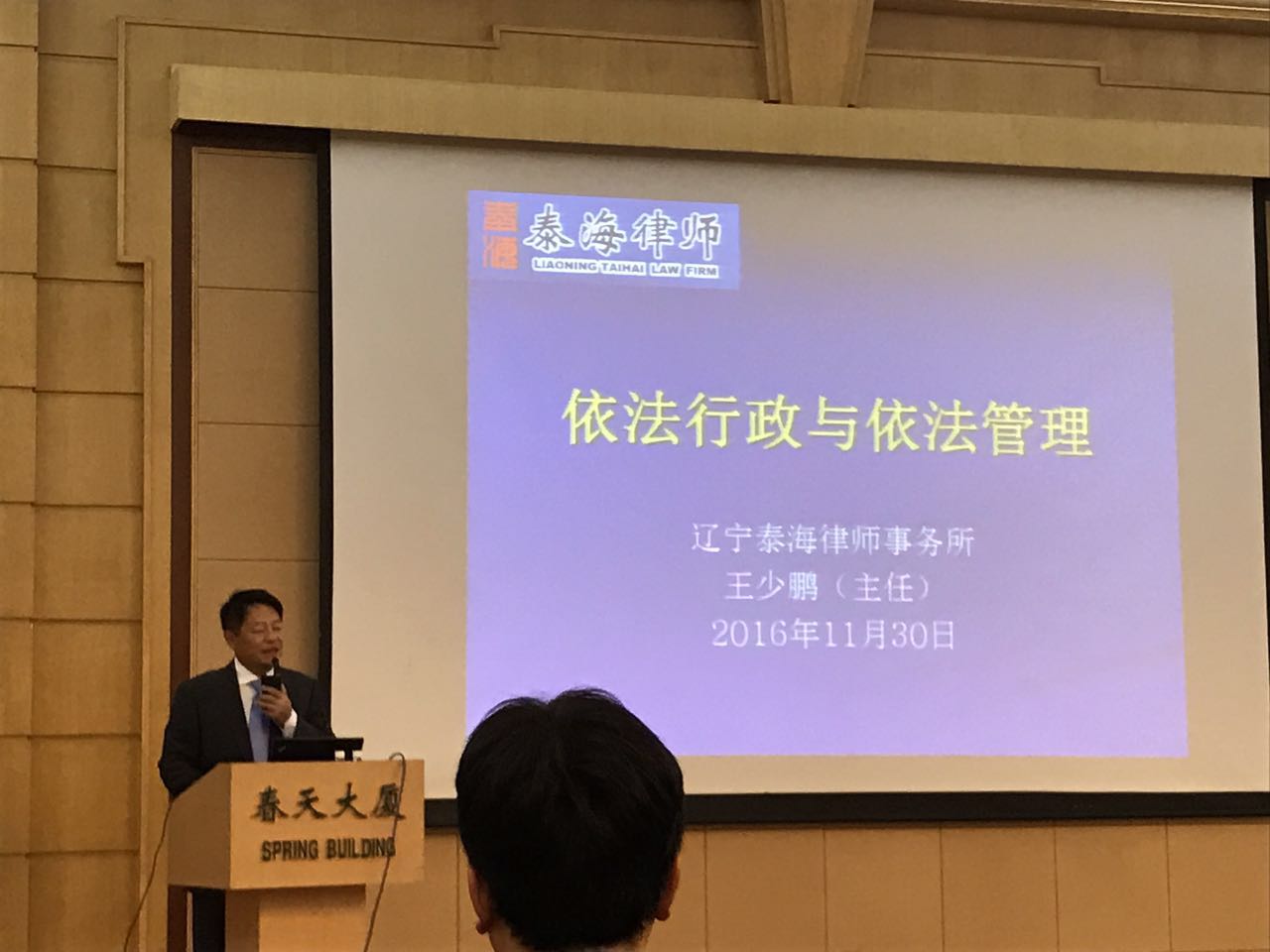 2016年11月30日,我所主任王少鹏律师为烟草总公司大连市公司(大连市烟草专卖局)做“依法行政与依法管理”专题讲座,从行政管理与企业管理两方面对烟草公司(局)的日常工作及法律风险等内容做了深入讲解。