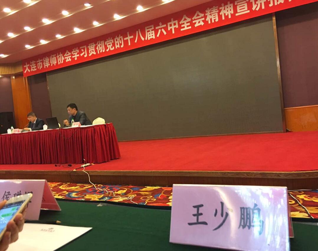 2016年12月9日,我所主任王少鹏受邀参加大连市律师协会学习贯彻党的十八届六中全会精神宣讲讲座。