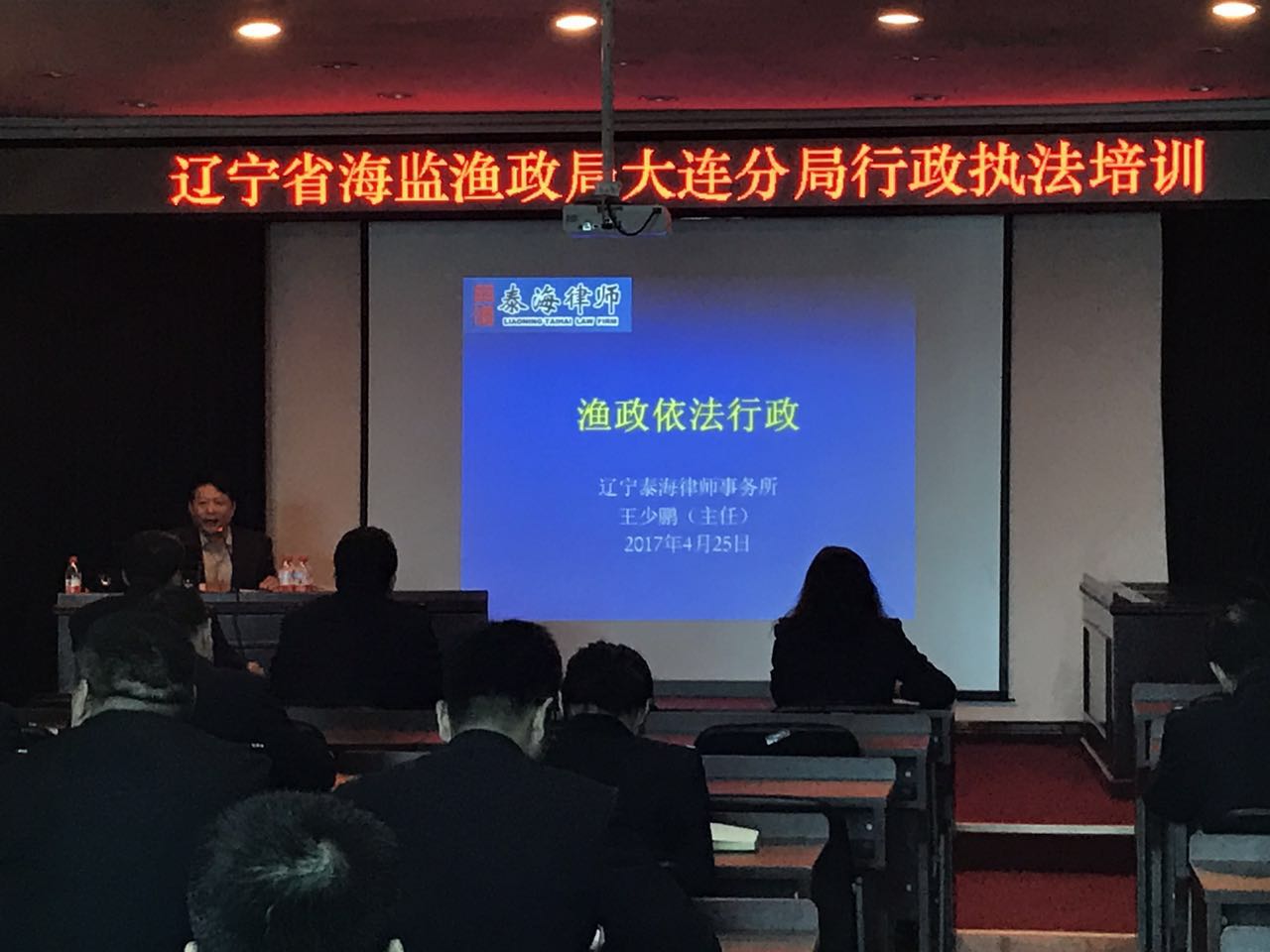 2017年4月25日,我所主任王少鹏律师应辽宁省海监渔政监督管理局邀请,为渔政局做“渔政依法行政”讲座,受到一致好评。