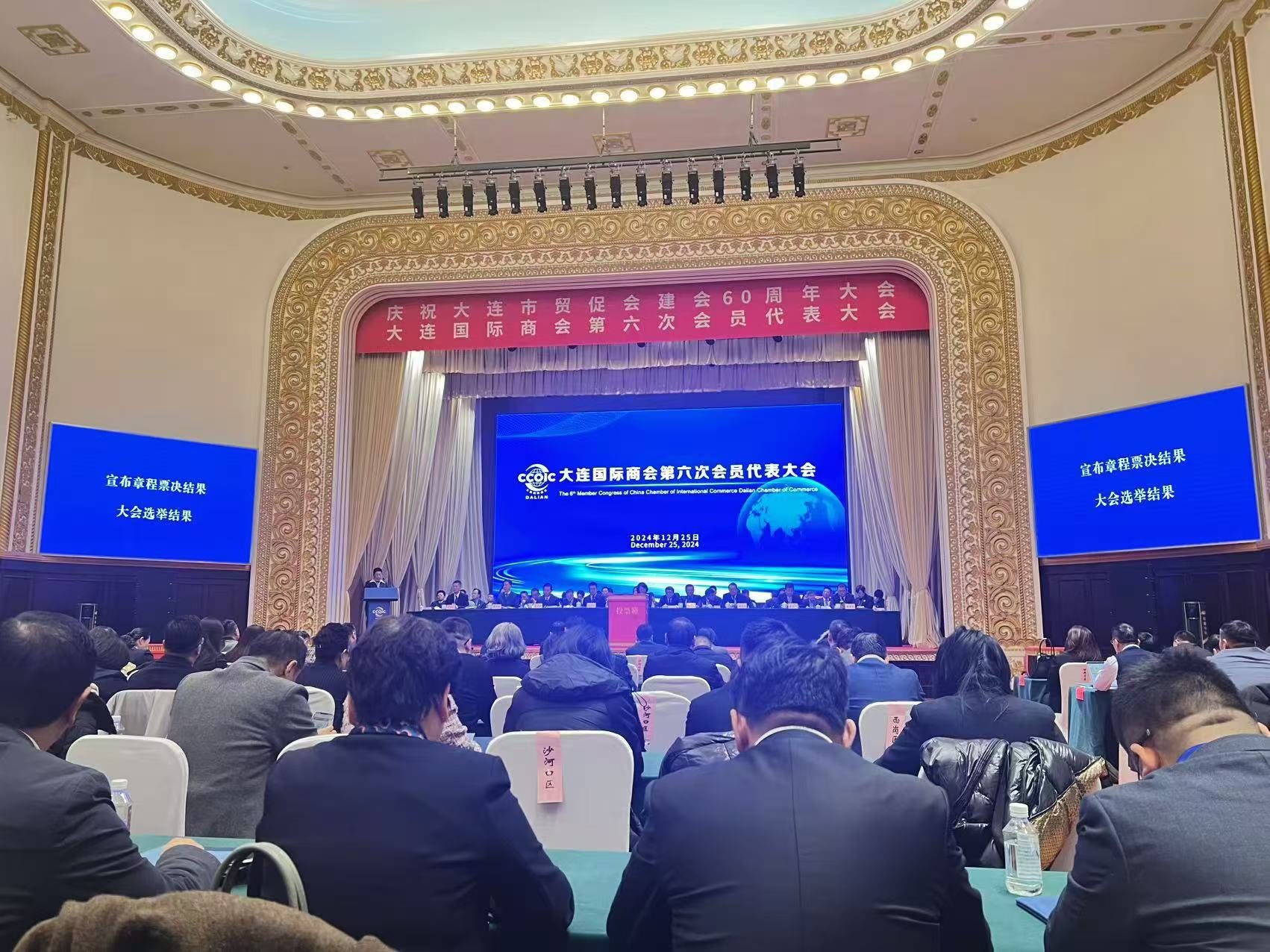 2024年12月25日,在大连棒岛宾馆8号楼。大连市国际商会第六届理事会。******次会议胜利召开,我所主任王少鹏光荣当选为大连国际商会第六届理事会理事。