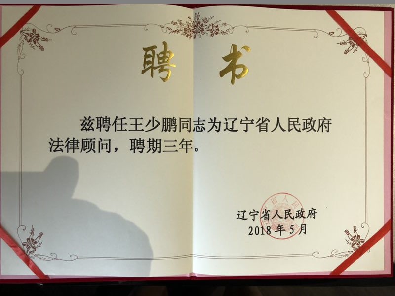 辽宁省政府法律顾问聘任仪式在沈阳举行,我所主任王少鹏律师受邀参加